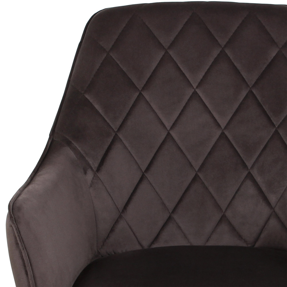 Элегантная стёганая спинка и тонкие линии стула придают особое настроение, а достаточно глубокая посадка и мягкие подлокотники обеспечивают комфорт.